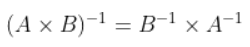 두 행렬의 곱셈에 역행렬을 취하면 각각의 역행렬을 순서를 바꿔서 곱한 것과 같다.