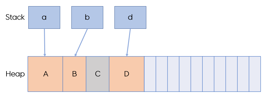 때문에 그냥 두는 것이다. 그래서 대형 객체 힙은 중간 중간에 빈 공간이 있다.