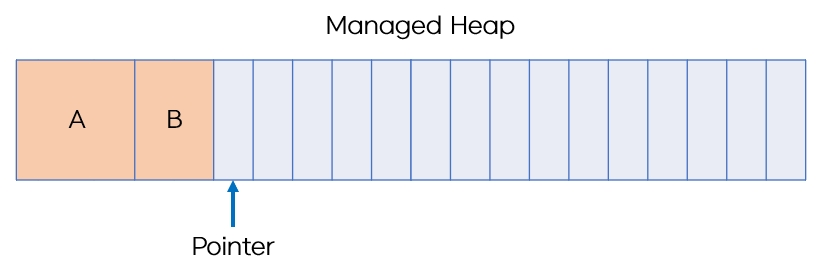 이렇게 확보한 Managed Heap의 첫번째 주소에 다음 객체를 할당할 메모리 주소를 메모리의 포인터로 가리킨다.