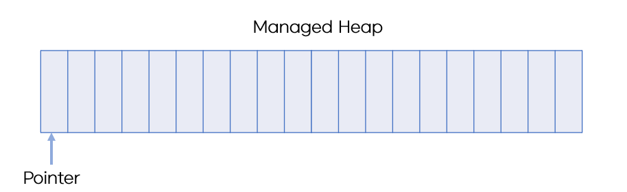 이렇게 확보한 Managed Heap의 첫번째 주소에 다음 객체를 할당할 메모리 주소를 메모리의 포인터로 가리킨다.