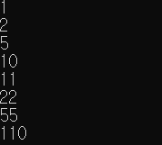 예를 들어서 111의 약수를 구할 때 √110 이하의 약수들은 1, 2, 5, 10 이고 이 것들을 110에 나누면 11, 22, 55, 110 이 나온다.