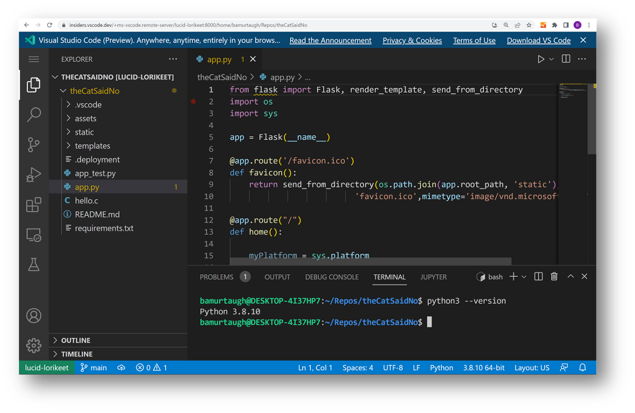를 치면 code-server가 실행되고 웹상에서 VS code를 이용할 수 있게된다!