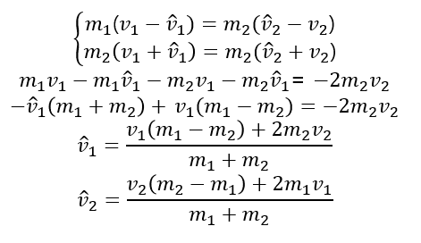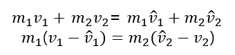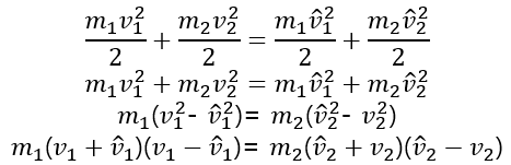 운동량 보존 식과 운동에너지 보존식을 나누면 위 식이 나온다.