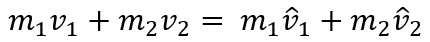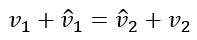 m이 질량 v가 속도 v^를 충돌 후 속도라고 하면 다음식이 된다.
